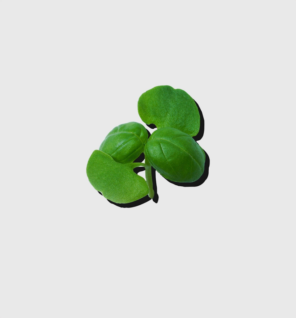 マイクログリーンとは、発芽して 1 ~ 3 週間くらいの若芽野菜を指します。 5cm にも満たない⼩ぶりの野菜です。ビタミン C、ビタミン K、ビタミン E、ルテイン、カロテノイドが成熟した野菜に⽐べて 5 倍以上も含まれている他、カルシウムや亜鉛、マグネシウムなどのミネラルも⾮常に豊富です。